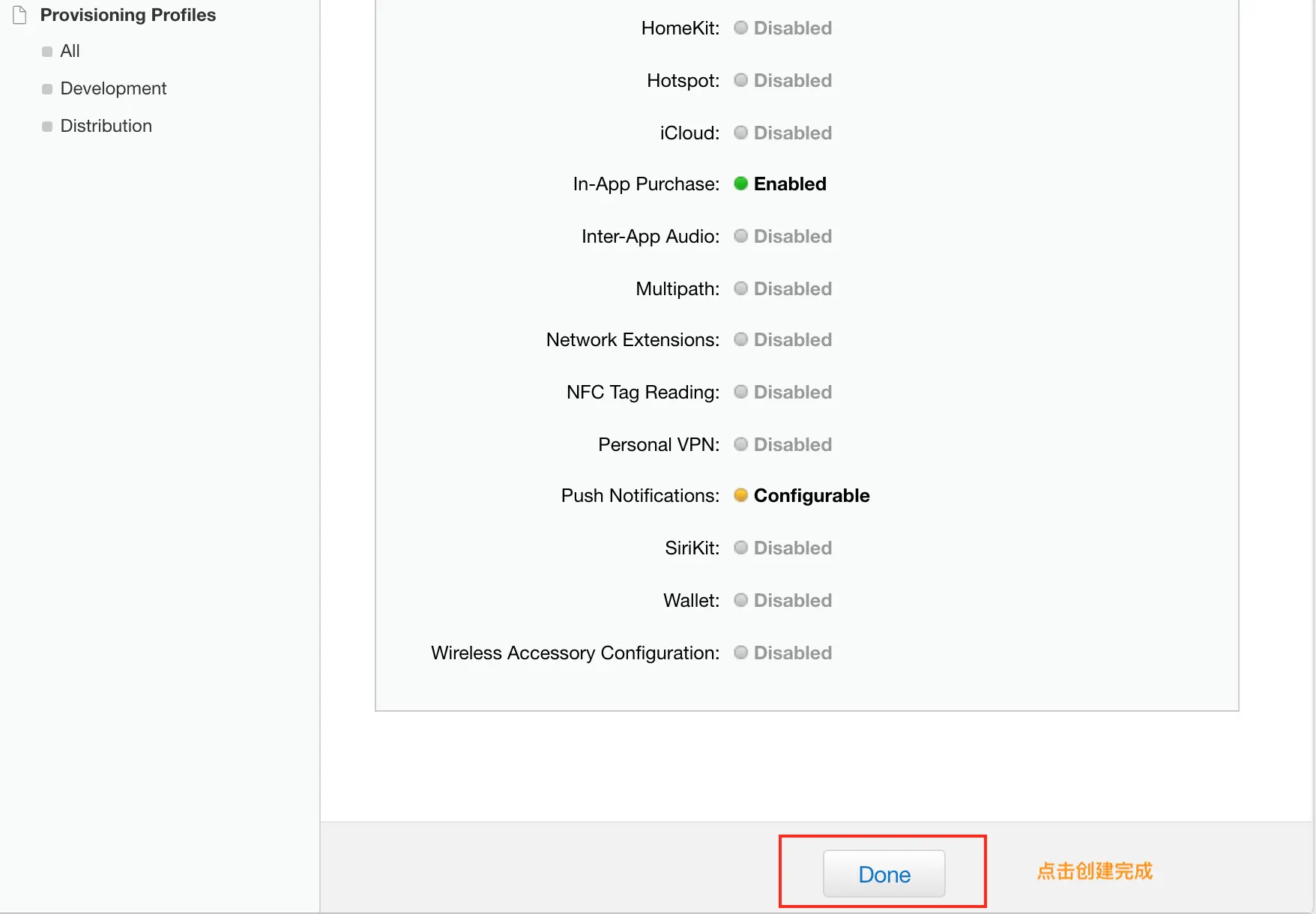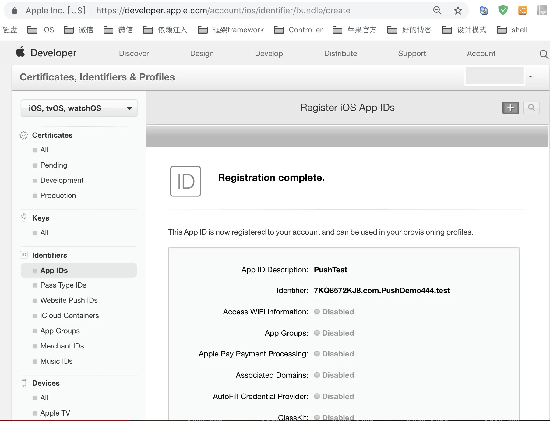 点击Done完成操作。这个时候App ID就创建成功了。
