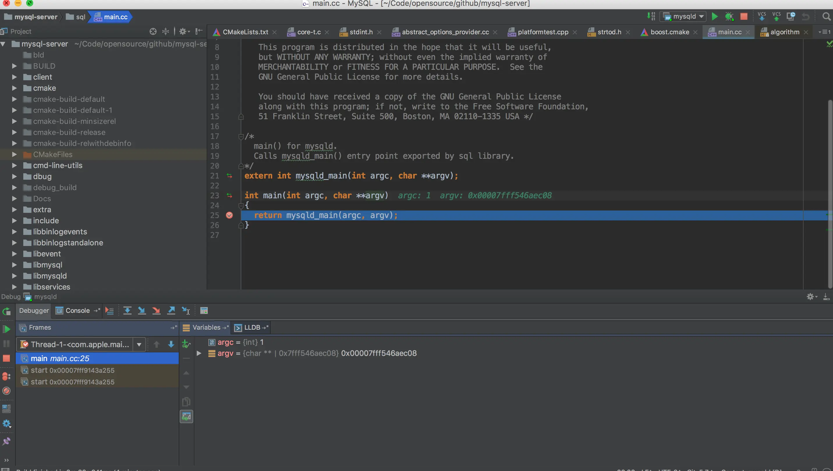 Mac下Debug mysql