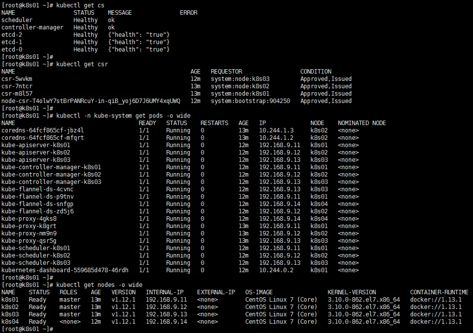 | k8s03 | 192.168.9.13 | K8S Master | CentOS 7.5 x64 | K8S Master / etcd / HAProxy / Keepalived |
