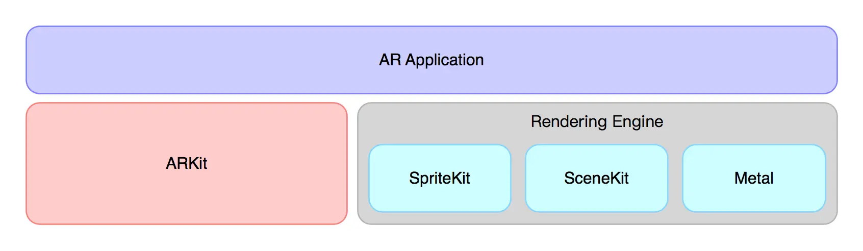iOS 平台的 AR 应用通常由 ARKit 和渲染引擎两部分构成: