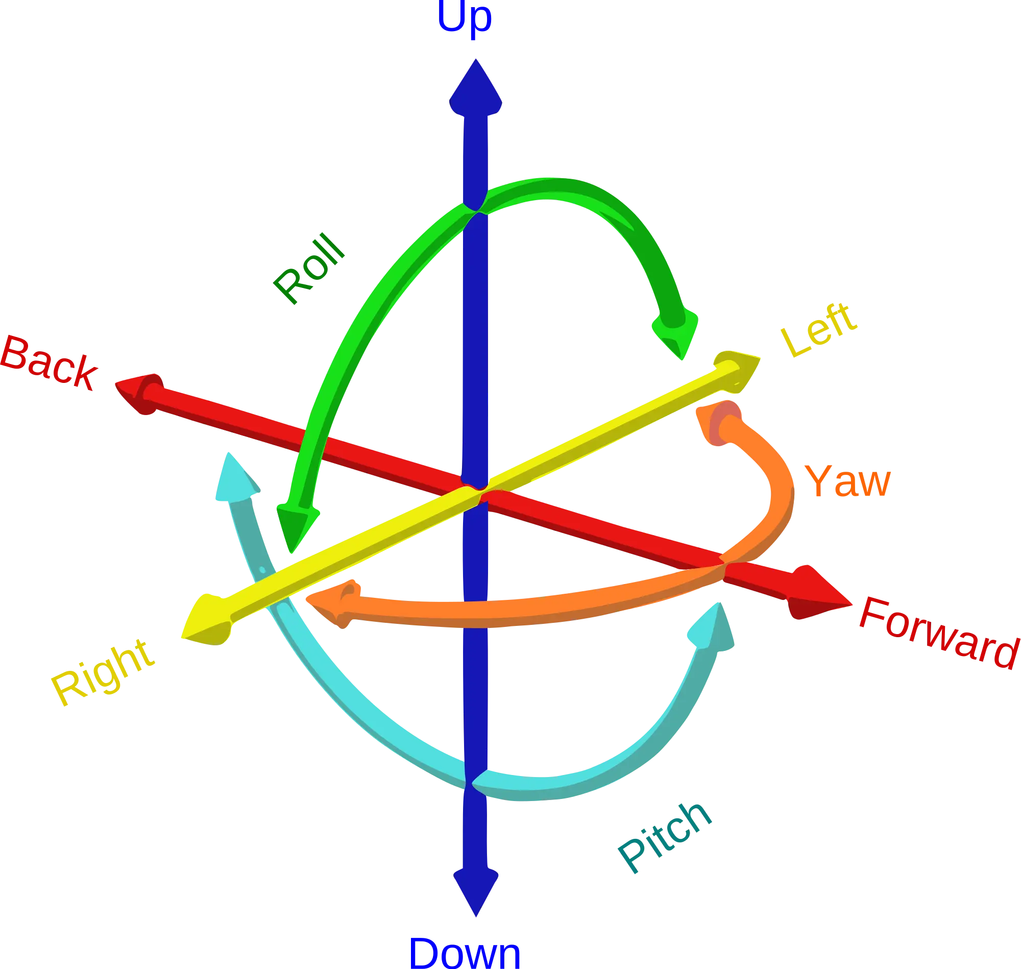 ARWorldTrackingConfiguration 提供 6DoF(Six Degree of Freedom)的设备追踪。包括三个姿态角 Yaw(偏航角)、Pitch(俯仰角)和 Roll(翻滚角),以及沿笛卡尔坐标系中 X、Y 和 Z 三轴的偏移量: