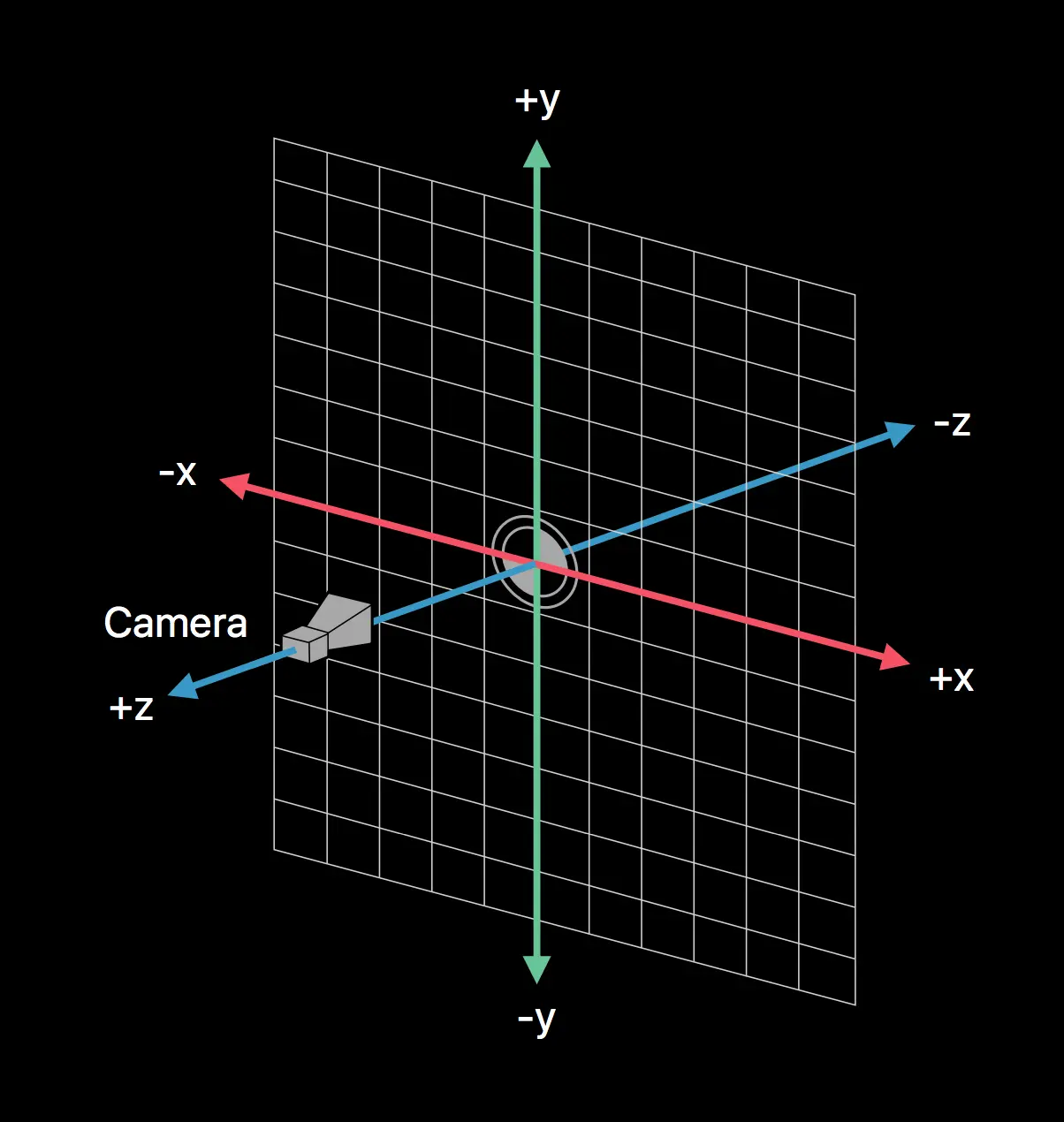 AR-World 的坐标系如下,当我们运行 ARSession 时设备所在的位置就是 AR-World 的坐标系原点。