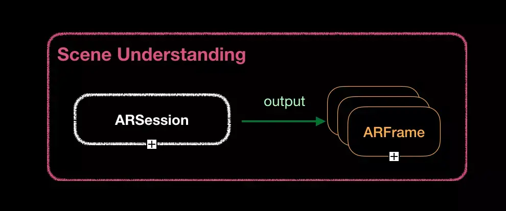 - 最后,ARSession 根据获取的图像序列以及设备的运动信息进行分析,最后输出 ARFrame,ARFrame 中就包含有渲染虚拟世界所需的所有信息。