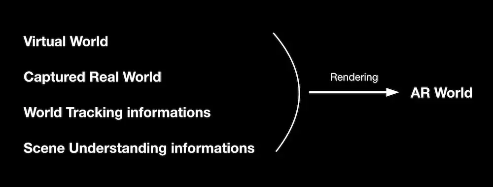 渲染是呈现 AR world 的最后一个过程。此过程将创建的虚拟世界、捕捉的真实世界、ARKit 追踪的信息以及 ARKit 场景解析的的信息结合在一起,渲染出一个 AR world。渲染过程需要实现以下几点才能渲染出正确的 AR world: