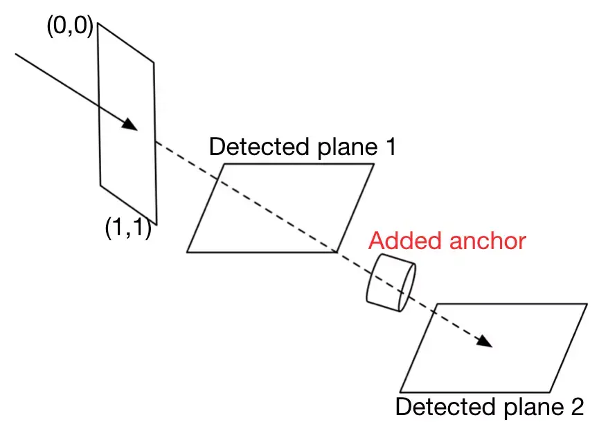 上图中,如果 Hit-testing 射线经过了有大小范围的绿色平面,则会返回此平面,如果射线落在了绿色平面的外面,则不会返回此平面。