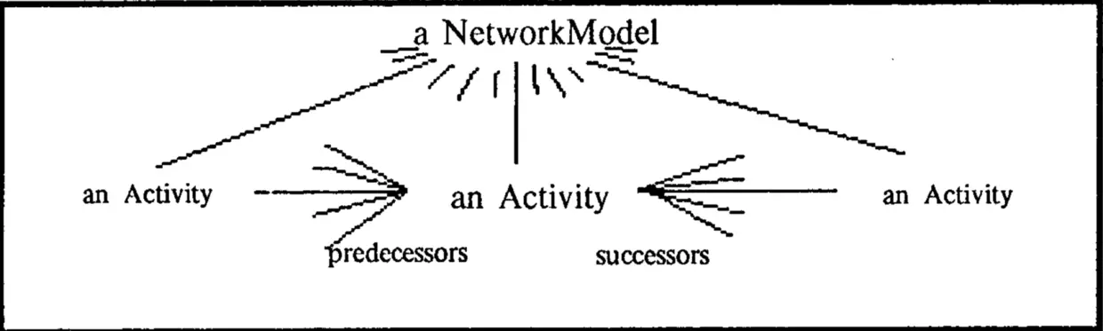 在我们的示例中,给定的网络模型在Smalltalk系统中表示为类NetworkModel的实例。NetworkModel中的每个活动都被表示为这个类的实例。