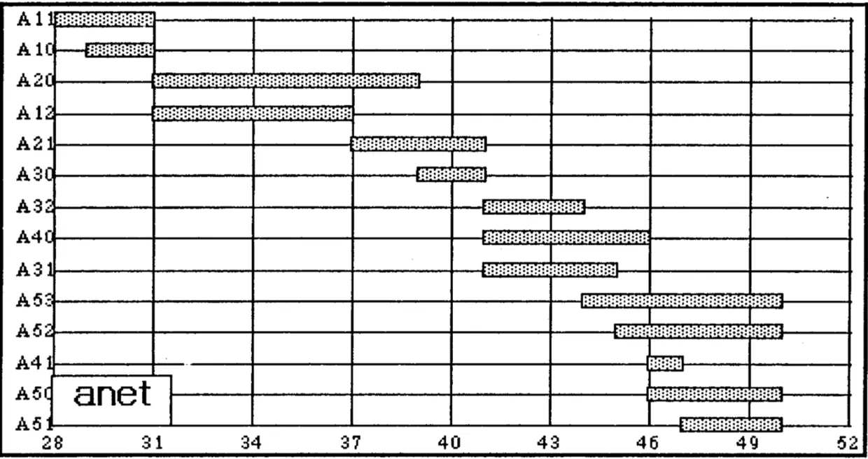这个View包含垂直轴的activity和水平轴的时间。在这个特定的View中,每个activity对应一个时间轴。通过改变阴影,可以较容易控制每个activity的进度,而不会扰乱整个项目进度。