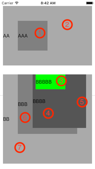 - (BOOL)pointInside:(CGPoint)point withEvent:(UIEvent *)event中已经返回了NO,BB除了BBB外没有其他子View,事件传递到BB中止,开始响应,也就传递不到BBBB上了,因此输出的是BB而不是BBBB