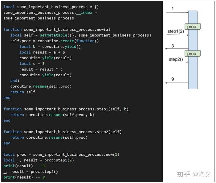 我们可以看到coroutine和object是非常类似的,但是coroutine更加强大。但是没有直接的语法支持,给coroutine添加method很笨拙。