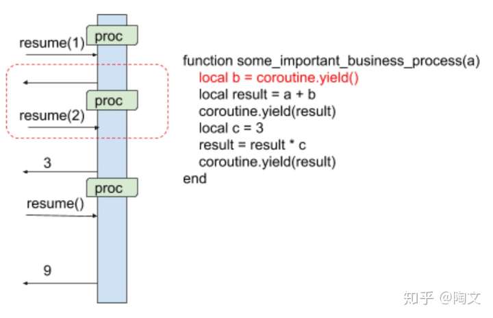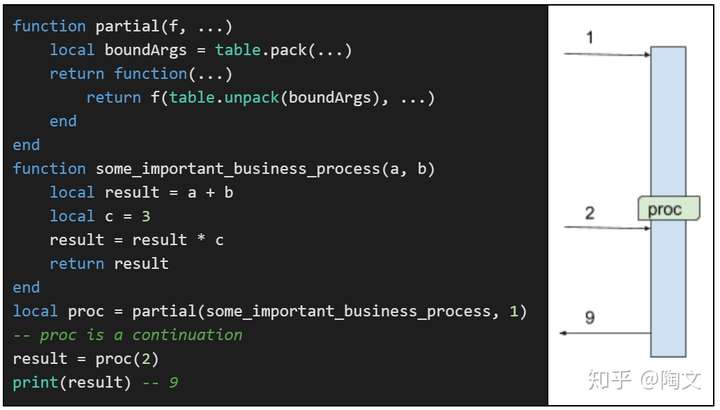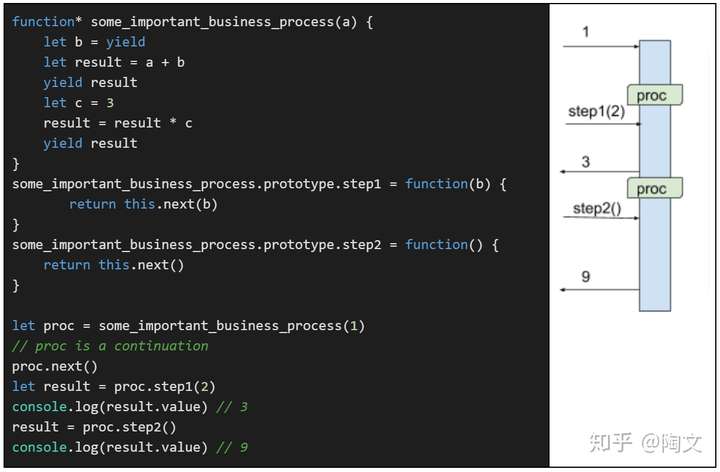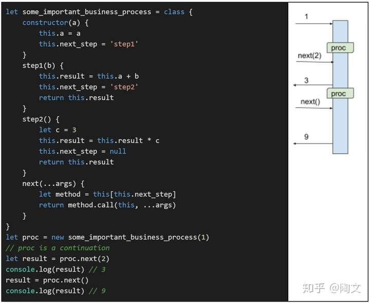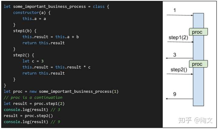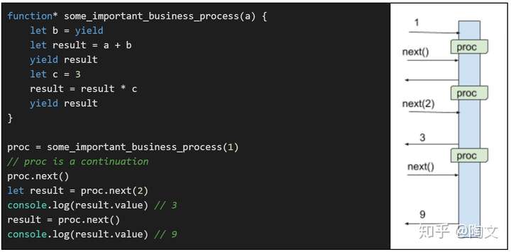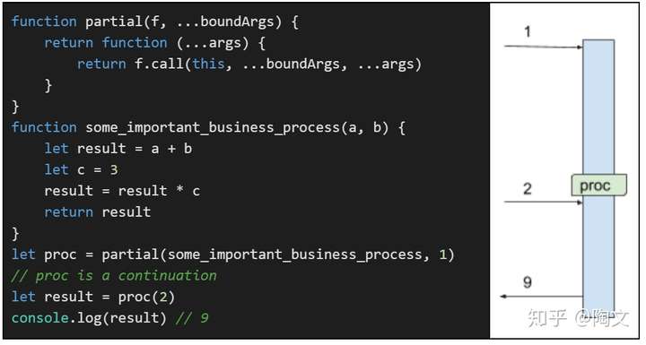 这里的变量”proc“和之前的”proc“是一样的。 它是一个continuation,将来的执行会从这里继续。