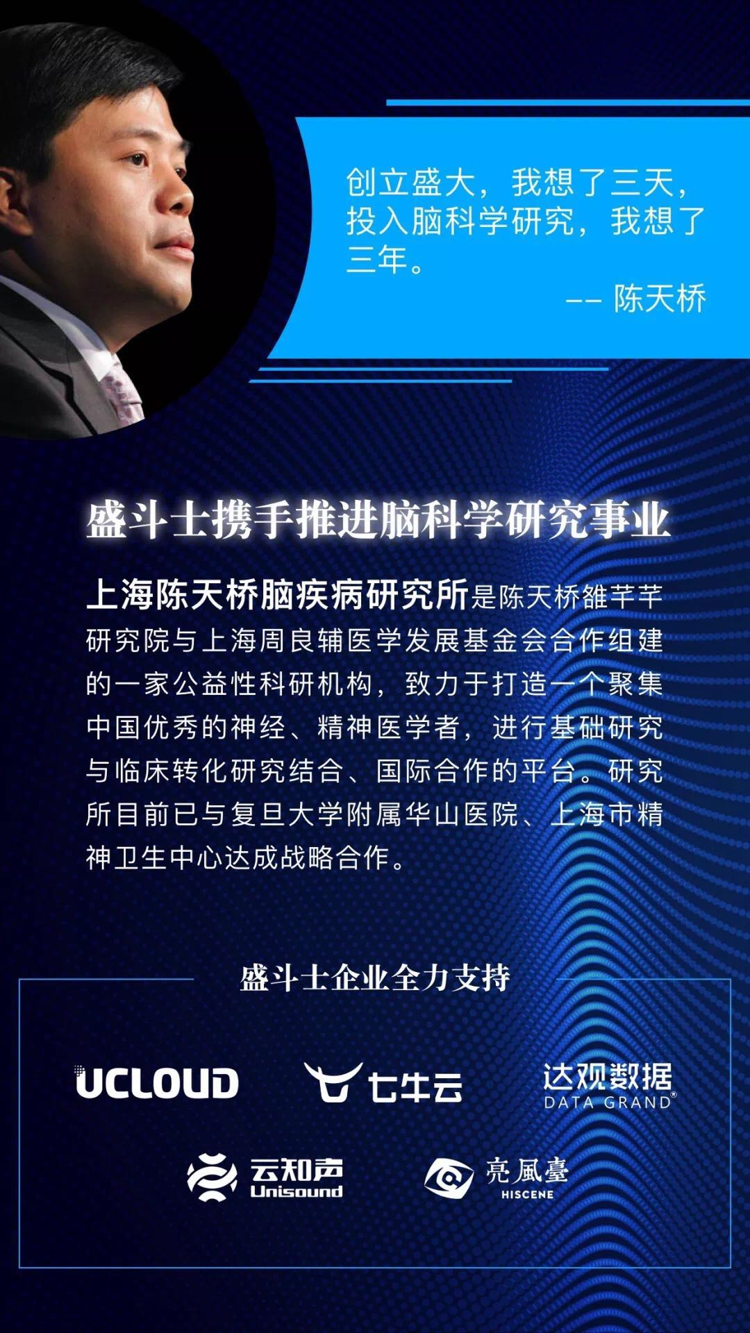 2018 年 10 月 20 日上午,七牛云等五家业内领先的盛斗士代表企业与上海陈天桥脑疾病研究所签署了战略合作协议,将充分利用各自优势资源,共同支持研究所的脑科学研究。