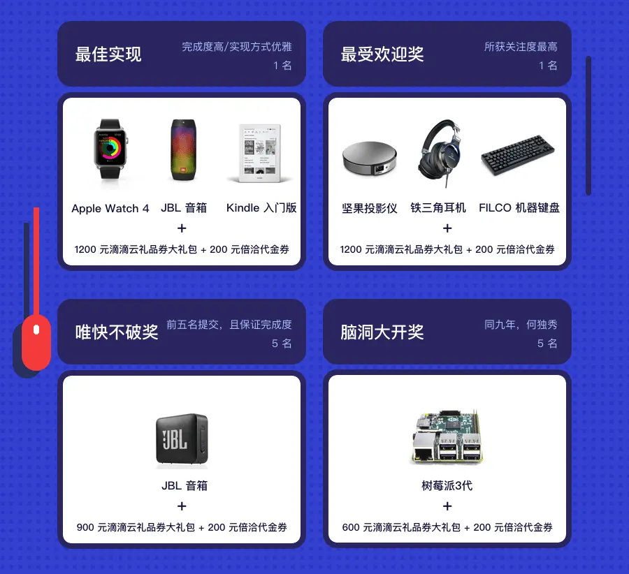 我们从 300 位工程师“最想要的礼物”清单里挑选了Top15作为大赛奖品,欢迎带着不试试看怎么知道的心态来战。我们期待有趣、有用、有情怀的作品诞生,其中优秀作品将被集成入倍洽,开放给 200000+ 团队使用。