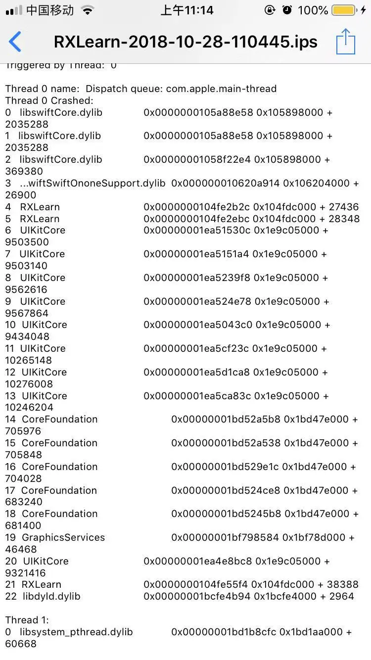 [ 0] A708945C-A0F4-36BE-ADAF-5374B79E83DA 0x0000000104238000 /Users/dowZhang/Library/Developer/Xcode/DerivedData/RXLearn-ahxdedtmqieozkgedsbvhiqtbltt/Build/Products/Debug-iphoneos/RXLearn.app/RXLearn