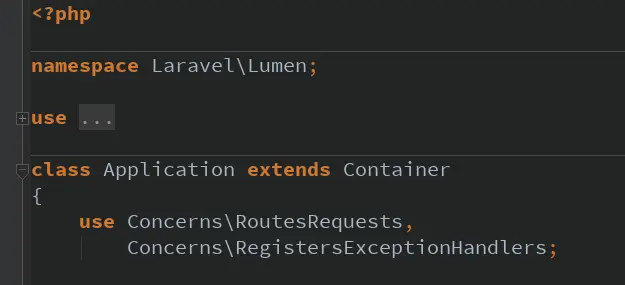 在app.php文件夹中可以看到,这个$app就是Laravel\Lumen\Application::class,而这个类继承了Container类,所以说Application类就是Laravel中的容器了。