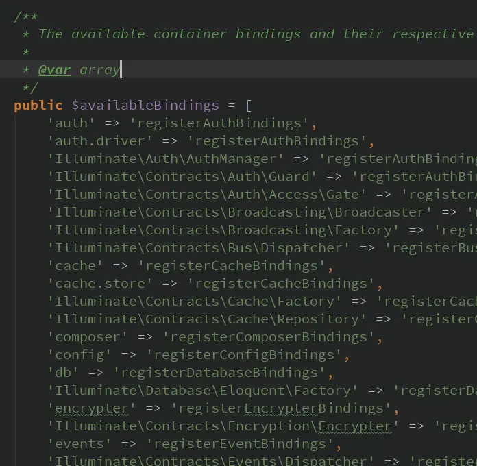首先可以看到,在Application中,"db" 绑定了registerDatabaseBindings()这个方法。