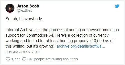 网站总监 MarkGraham 表示,互联网档案馆收录的内容不断的增长,其中包括超过四百万本书籍和 3390 亿个网页。但是最近该网站又推出了 Commodore 64 模拟器,理论上里面的每个软件(包括几款经典游戏)都经过了广泛的测试,可以像往年一样正常工作。