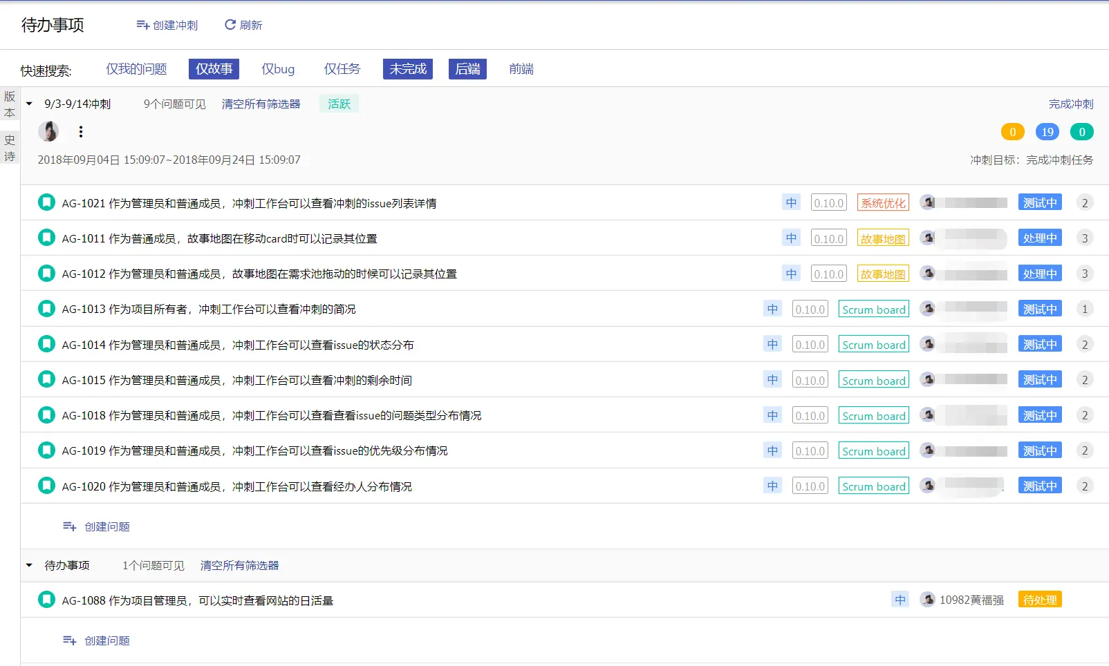 - 未规划区的故事是指已经分配了史诗,但是没有编入任意一个发布版本的用户故事。