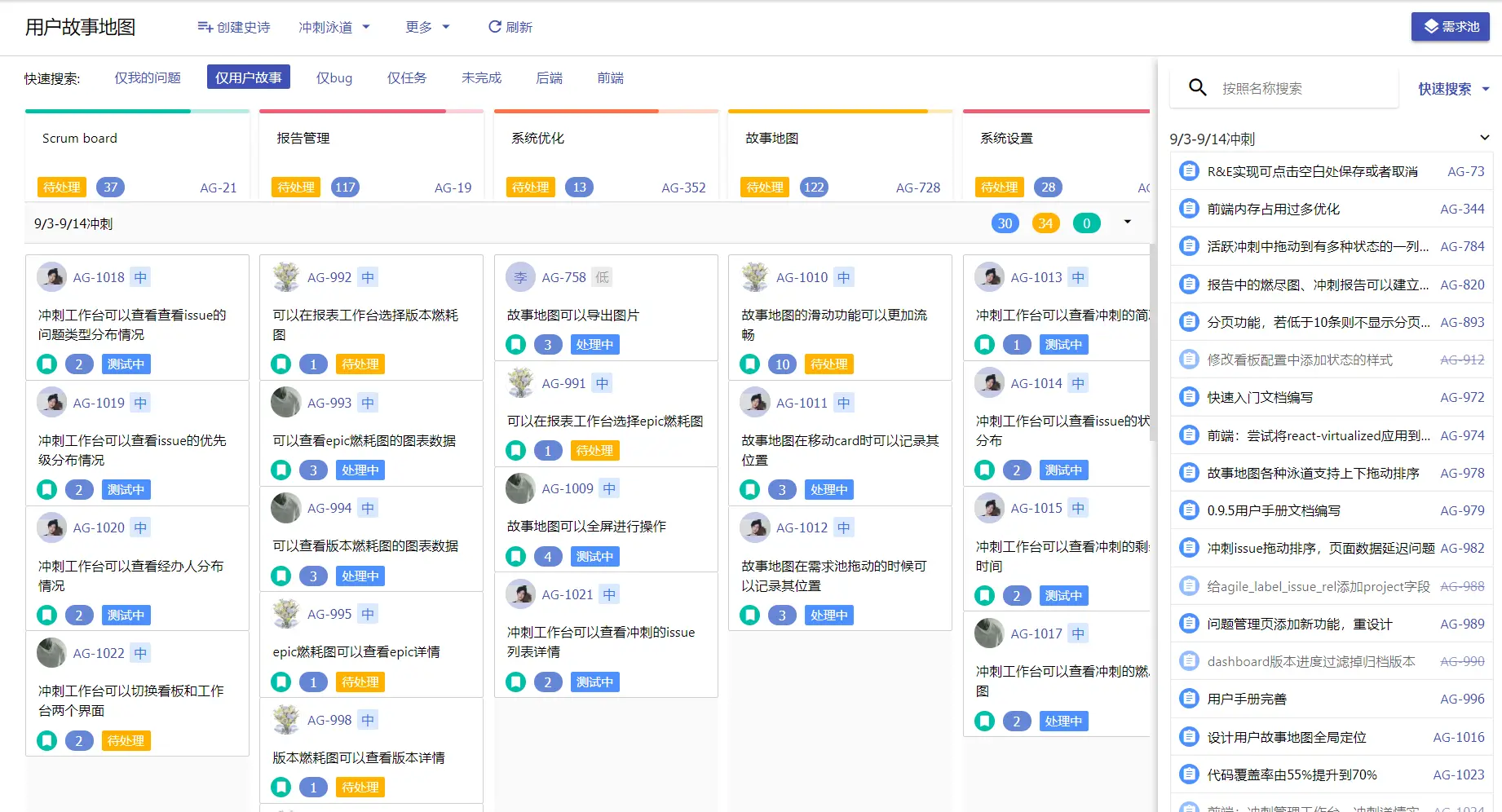 - 冲刺迭代作为地图的纵轴子tab页,可以将地图中的用户故事放入对应的迭代。