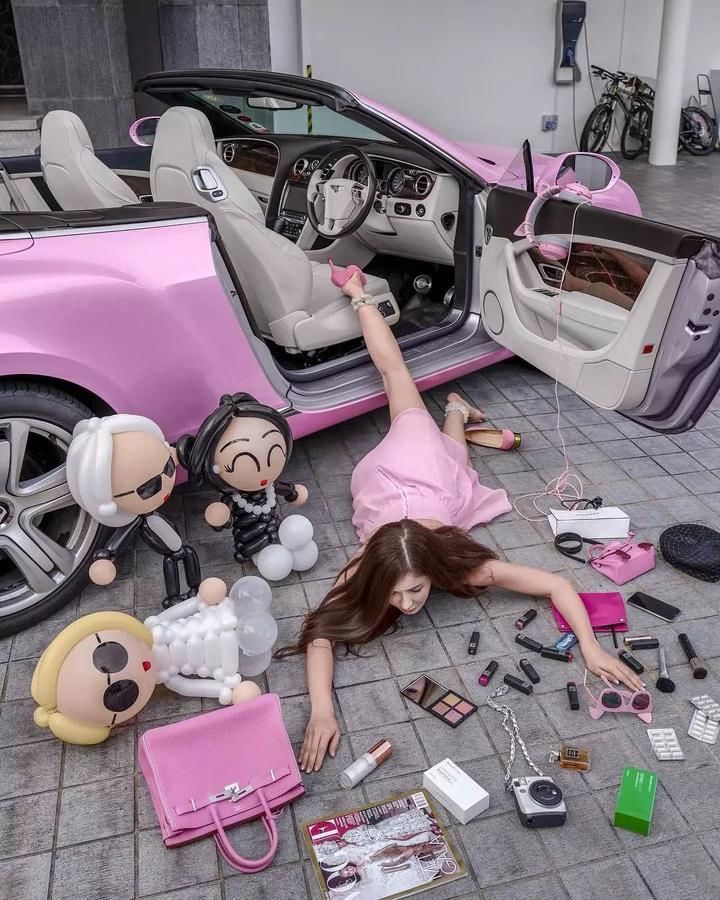 随着这个话题的越来越热,各行各业也开始加入了『炫富』挑战。简单来说,具体形式就是趴在地方,身边摆放一些可以拿出来『炫』的物品,类似网络游戏中的『爆装备』一样。好似无意间摔出来的一样。
