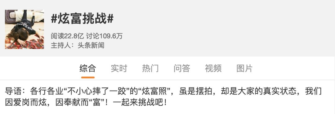 传入中国后,该内容最先在微博火了起来,微博上甚至设置了一个#炫富挑战#的相关话题。