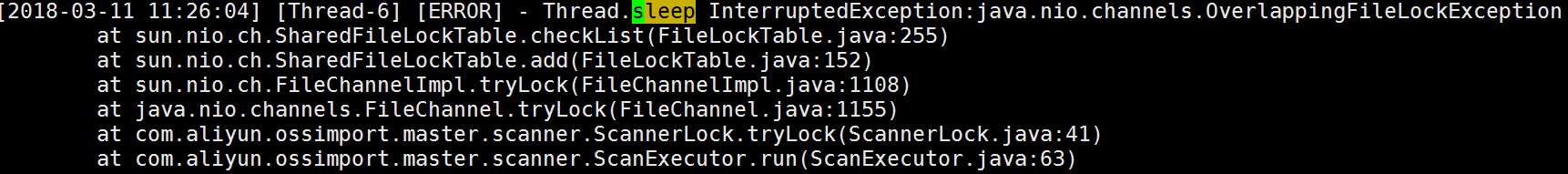 channels.OverlappingFileLockException 是在扫描源文件,拉取源流超时导致,在 log 中可以看到是哪个文件超时,手动 curl 测试一下源是否能否访问。