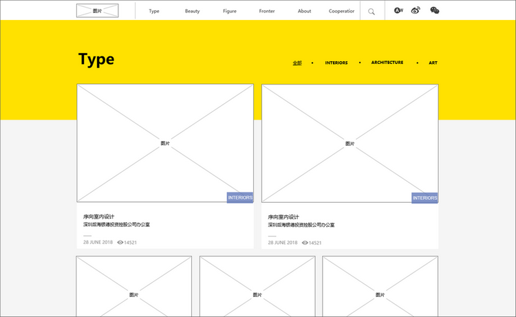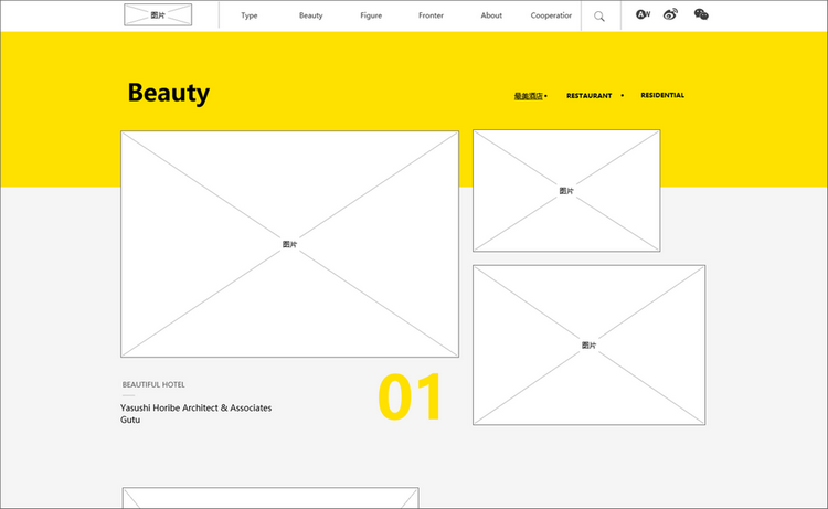这个原型的主要页面有:首页、分类、最美等页面。