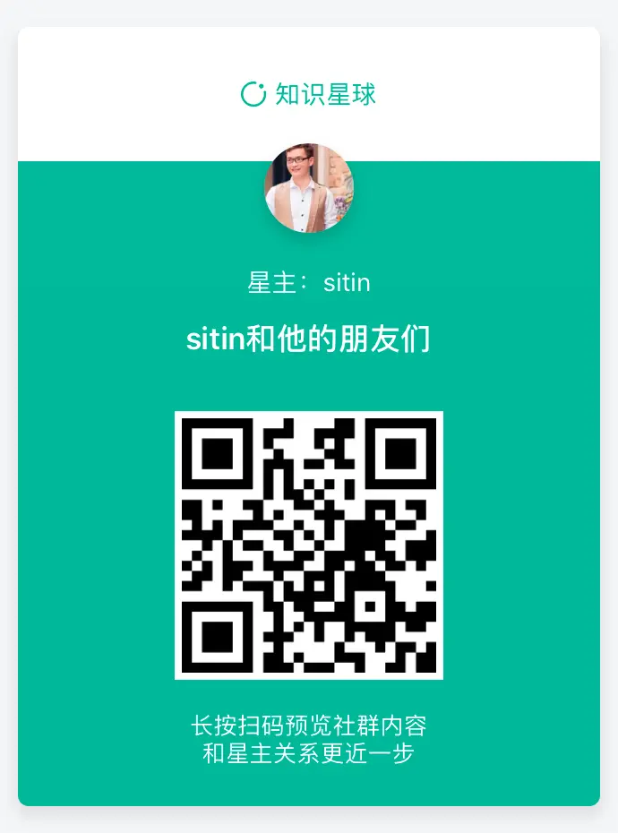 扫描上面的二维码即可进入,或者点击 t.zsxq.com/f66yrRj 进入我的星球。