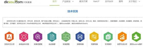 支持中文分词(N-最短路分词、CRF分词、索引分词、用户自定义词调、词性标注),命名实体识别(中国人民、音译人民、日本人民,地名,实体机构名识别),关键词提取,自动摘要,短语提取,拼音转换,简繁转换,文本推荐,依存句法分析(MaxEnt依存句法分析、神经网络依存句法分析)。提供Lucene查件,兼容Solr和ElasticSearch。
