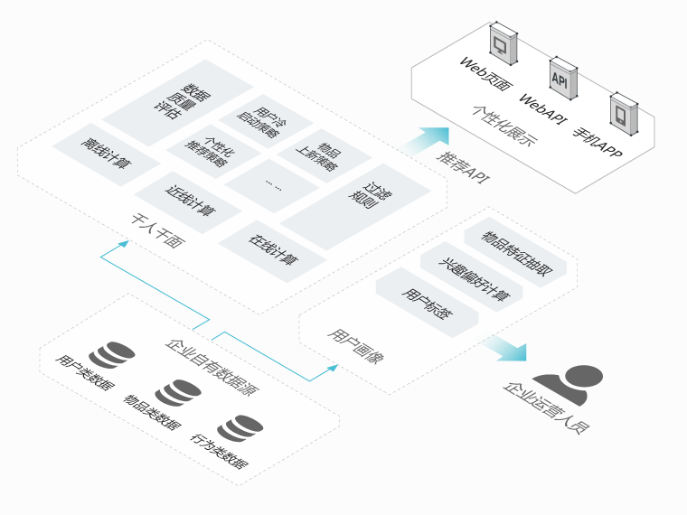 适用于需要个性化推荐的多种业务场景,以数据驱动业务,通过人工智能实现1对1营销,为您的用户提供量身定做的服务,帮助您的企业快速创新。