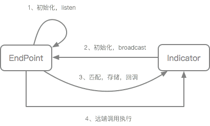 很简单,我们使用的是 IPC 广播,在初始化的时候,Indicator 会广播自己初始化的信息,接受到的 EndPoint 就会注册到自己名下,将客户端的信息保存起来。