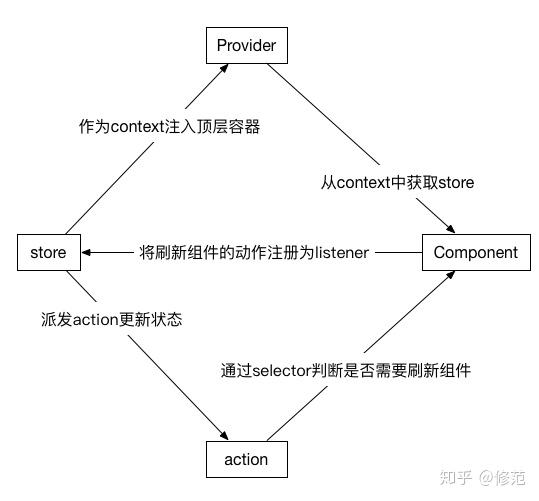 对于第一个问题,react-redux 解决手法也极为简单且常见。通过顶层 Provider 容器接受 store 作为 props,再将 store 作为 context 内容传入子孙组件;在用户端实际消费状态的组件(自定义组件)外层构造直属父级容器(HOC 高阶组件),由直属父级容器将通过 context.store 属性获取的状态数据输入为自定义组件的 props。