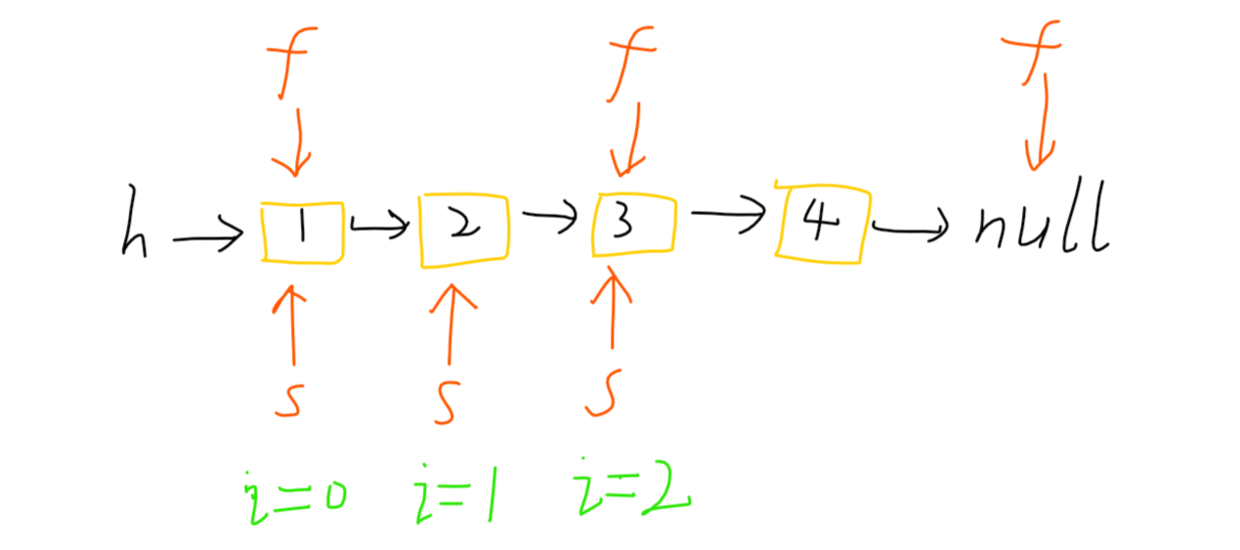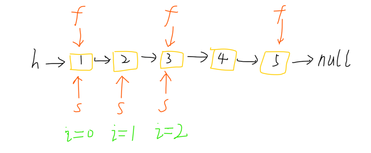 - 首先,利用快慢指针确定链表的总结点数。