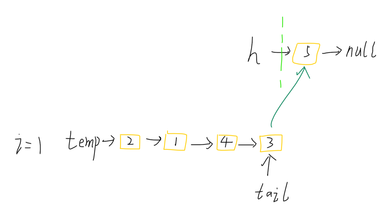 temp = p1; // 第一轮翻转,temp 指向翻转后的新链表的头结点