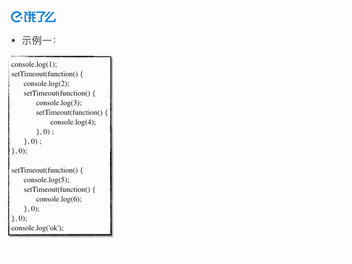 注:因为这里setTimeout设置的延迟时间为0,所以并没有直接体现出异步回调执行的先后顺序。实际过程中,异步任务回调执行的顺序,与js执行栈清空完成时间及其设置的延迟时间有关。
