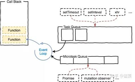 - 主线程先将执行栈中的同步任务清空,然后检查事件队列中是否有任务,如果有,就将第一个事件对应的回调推到执行栈中执行,若在执行过程中遇到异步任务,则继续将这个异步任务排列到事件队列中。