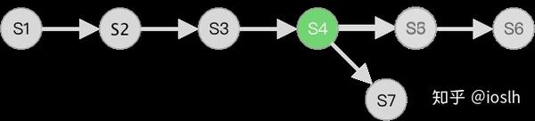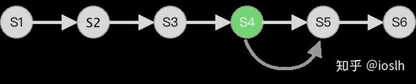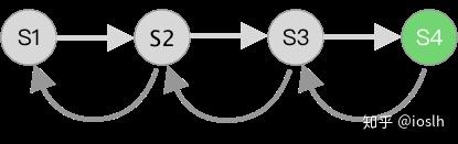 不管什么类型的交互应用,终究是用户对某个对象进行操作,每一步操作都会对操作对象产生副作用,使其状态发生改变。如下图中,系统初始化后,操作对象的初始状态是 S1,用户进行 A、B、C 等操作后,现在操作对象的状态是 S4。 如果没有撤销重做功能,这条操作链只会一直往前延伸,我们无法回到以前的状态。