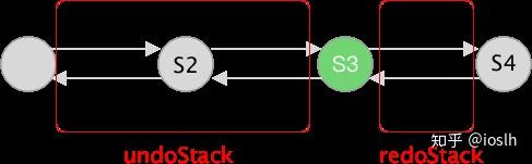 }如下图所示,如果当前应用状态是 S3,undoStack 中保存左侧的命令对,redoStack 保存右侧而对命令对。