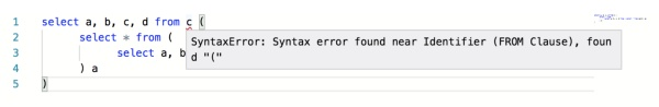比如当用户输入 select (name,这是个未完成的 SQL 语句,我们的目标是提示出这个语句未完成,并给出后续的建议: )- + % / * . ( 。