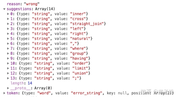 分析一个 SQL 语句,现将 query 字符串转成 Token 数组,再构造文法树解析,那么可能出现错误的情况有两种: