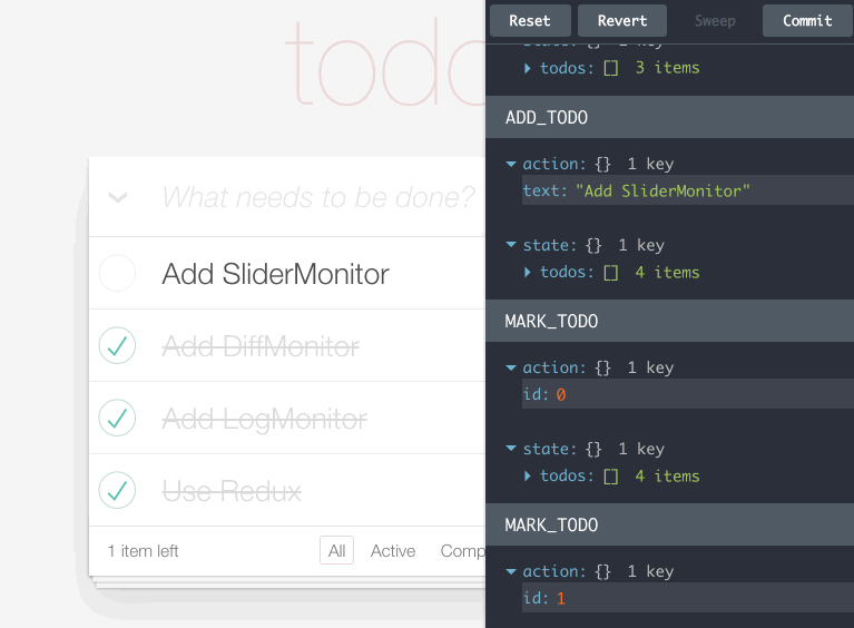 您可以将Redux DevTools Extension与任何处理状态的体系结构集成。 每个React组件的本地状态可以有多个存储或不同的实例。 您甚至可以“时间旅行”取消操作(观看此Dan Abramov视频)。 日志记录UI本身甚至可以自定义为React组件。