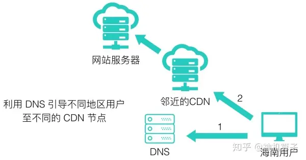 那么用户如何能被引导到 CDN 服务器上呢?这主要是依赖于 DNS 服务。在前面我们聊过,用户要想知道一个域名具体对应的 IP 地址,需要进行 DNS 查询。那么我们只要利用 DNS 服务,对不同地区的用户,返回不同的 IP 地址,就可以将流量导流至相应的 CDN 服务器。这里有个小知识点是 DNS 查询的CNAME解析,大家可以自己搜索了解一下。