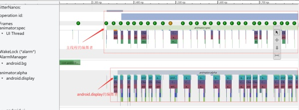 2、全局放大的原理(主要在system_server中存在双编舞者协作实现),如下图所示在启动手势放大过程中systrace抓取到下面的现象: