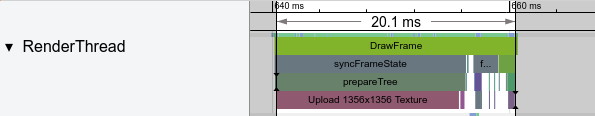 Android的显示系统使用OpenGL,bitmap在底层表现为OpenGL的纹理,因此在bitmap第一次被展示的时候,bitmap会被首先上传的GPU上。Systrace上标记为 Upload width x height Texture就是这种情况。这个过程可能会花费数毫秒(如下图),但是这是GPU显示图像的必要过程。