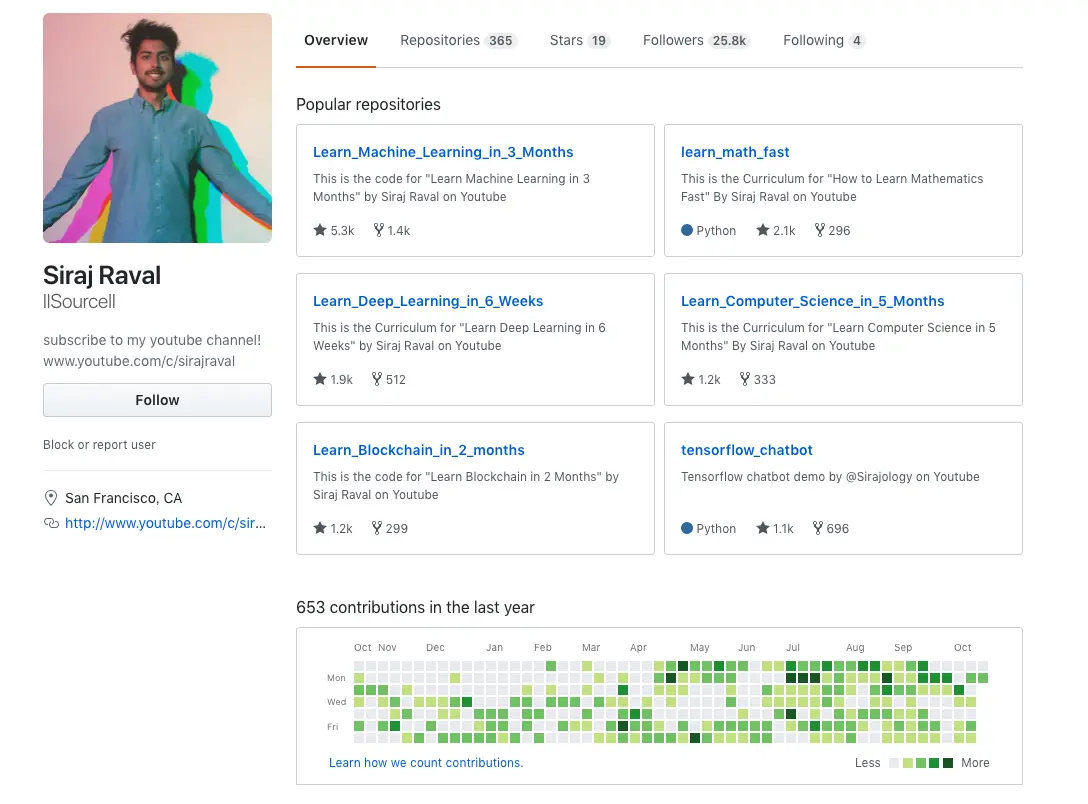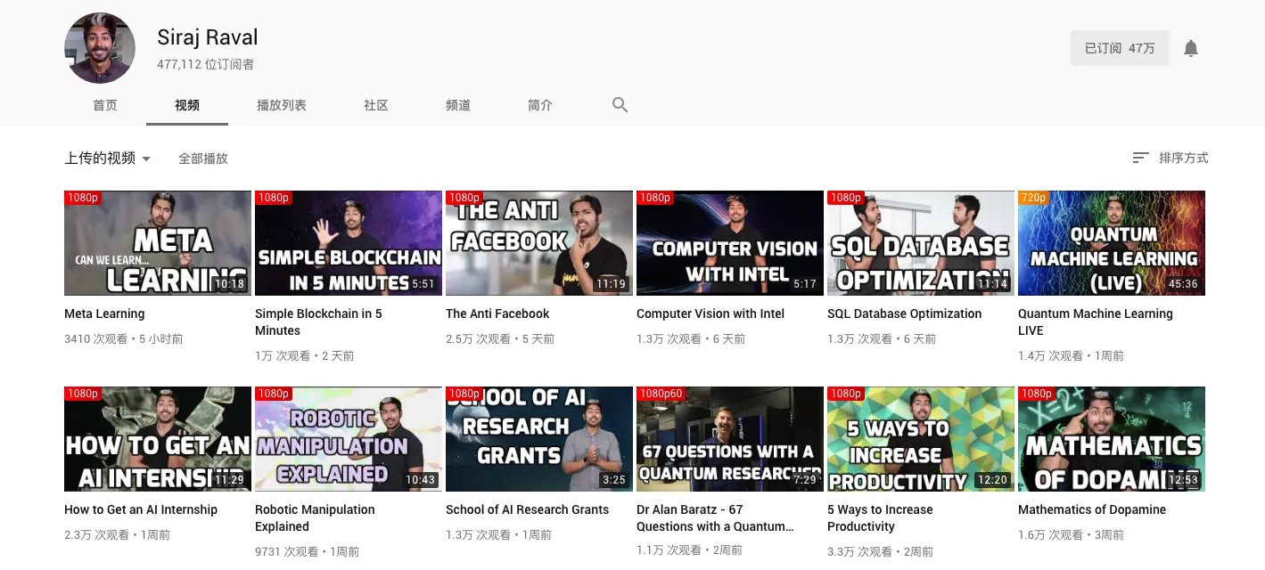 Siraj 是一个印度裔的程序员,在去年创办了一个 AI 学习社区「School of AI」,他在 YouTube 上传的视频都是关于人工智能相关的课程。