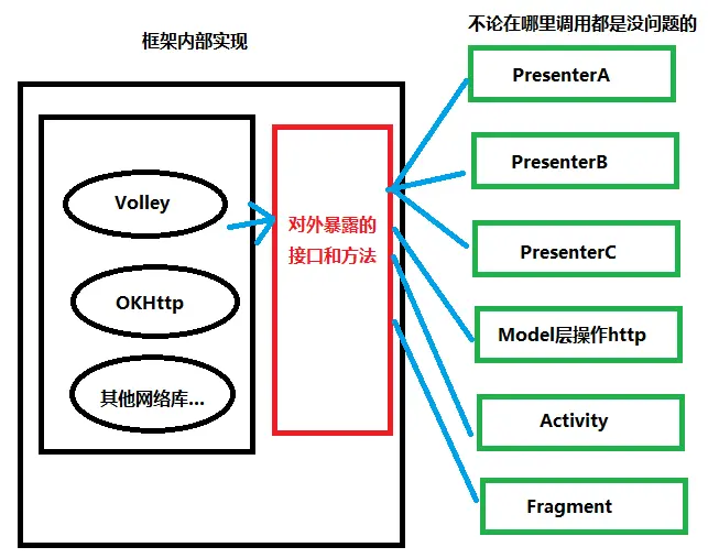 这样一来,我们开发中不会去管我到底是用的是什么网络库,我们只管使用框架就好了,省事省力。