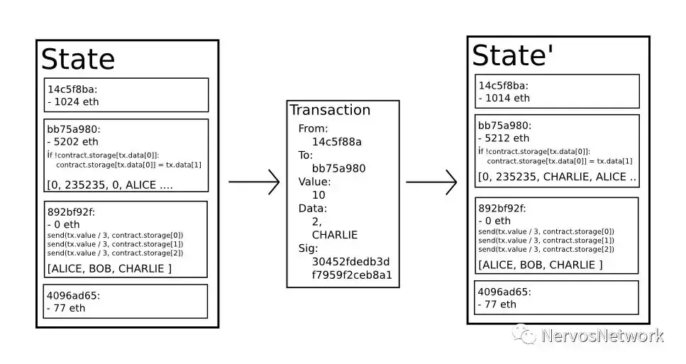合约以代码形式保存在 Account 中,并且 Account 拥有自身状态。这种模型具有更好的可编程性,容易开发人员理解,场景更广泛。