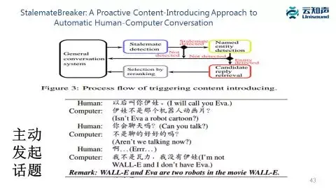 这里一篇百度的文章思想也是类似的,如果觉得聊天聊不下去了,会先在上下文里去做实体分析和实体链接,找到作为聊天主题的实体之后再根据知识图谱找相关的实体,根据相关的实体产生话题。