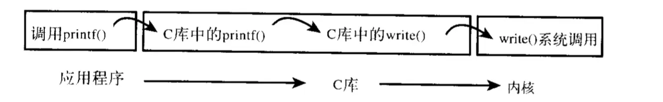 - 应用程序通常调用库函数,库函数通过系统调用让内核带其完成各种任务