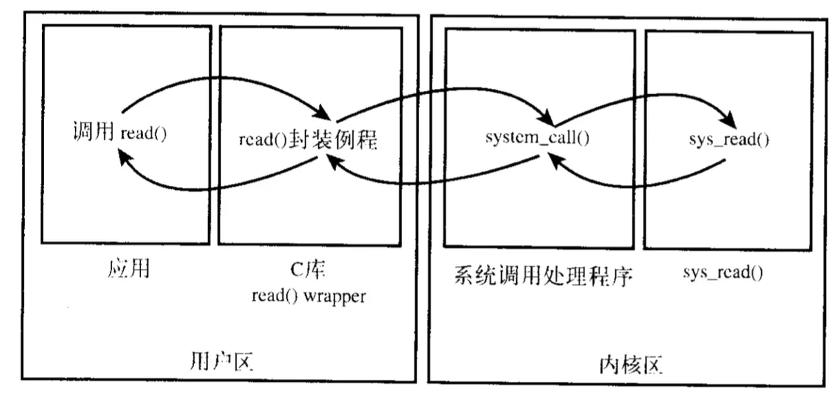 - 一般程序在用户空间执行,执行系统调用或触发异常时,进入内核空间,内核代表进程执行,并处于进程上下文中