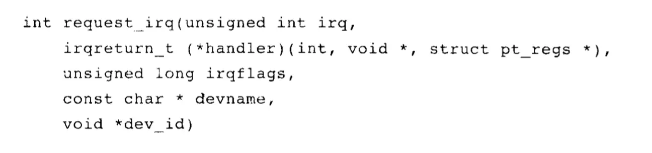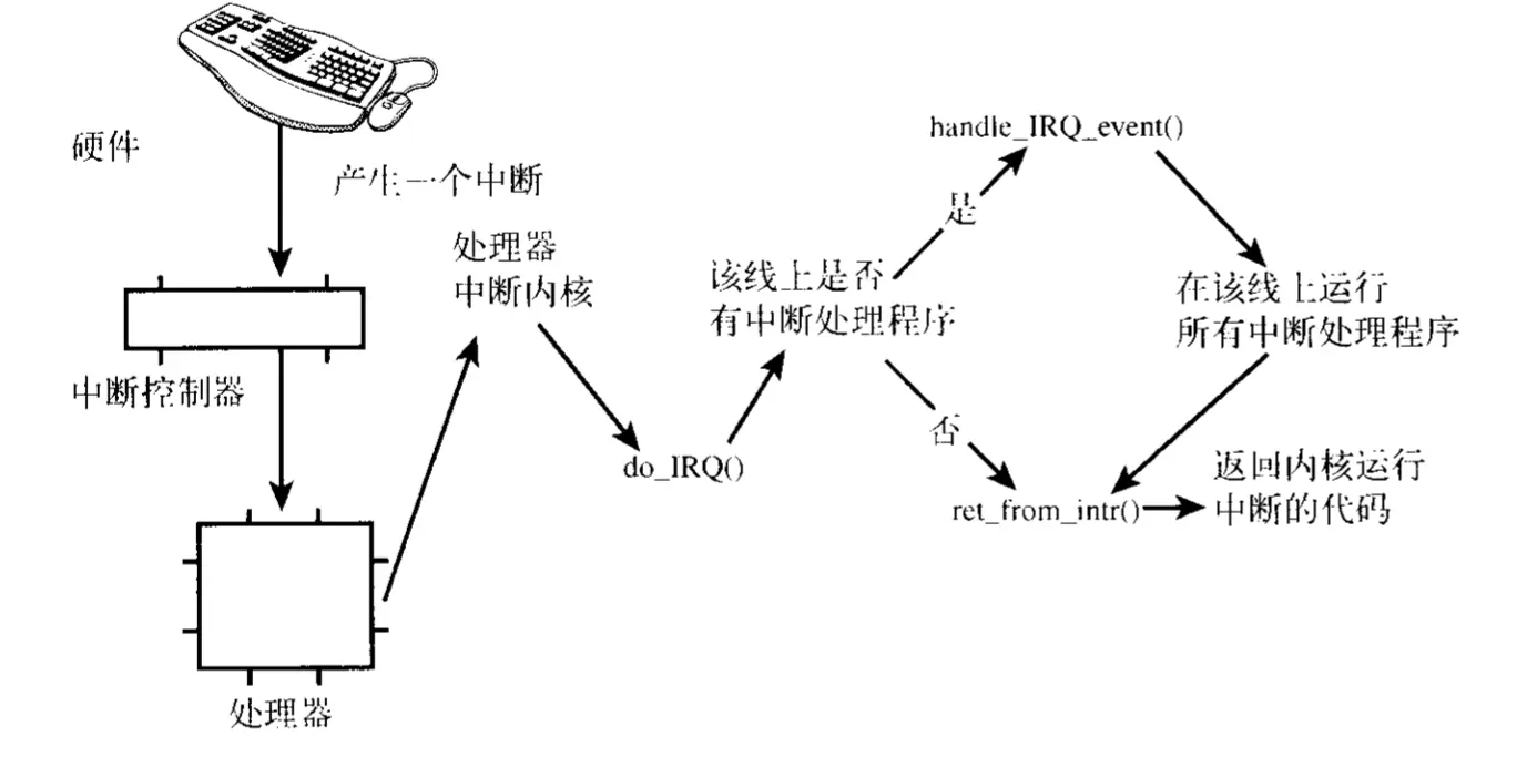 - 内核对硬件设备的管理:硬件想要通讯时,发送异步信号去打断内核,内核通过中断号查找处理程序